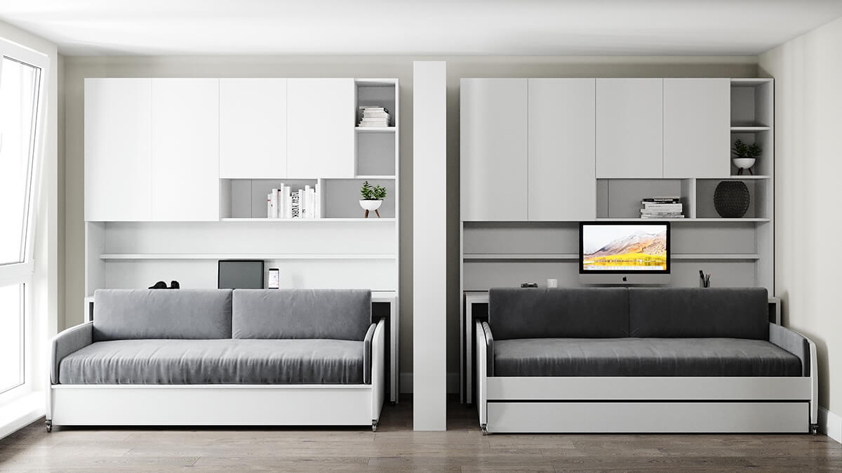 Eco Compact Full/Full XL Sofa Bed and Cabinet System