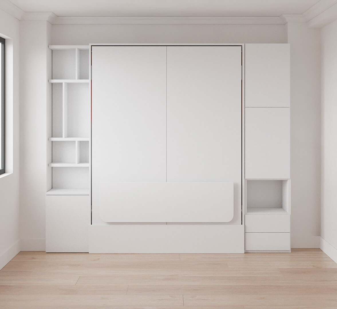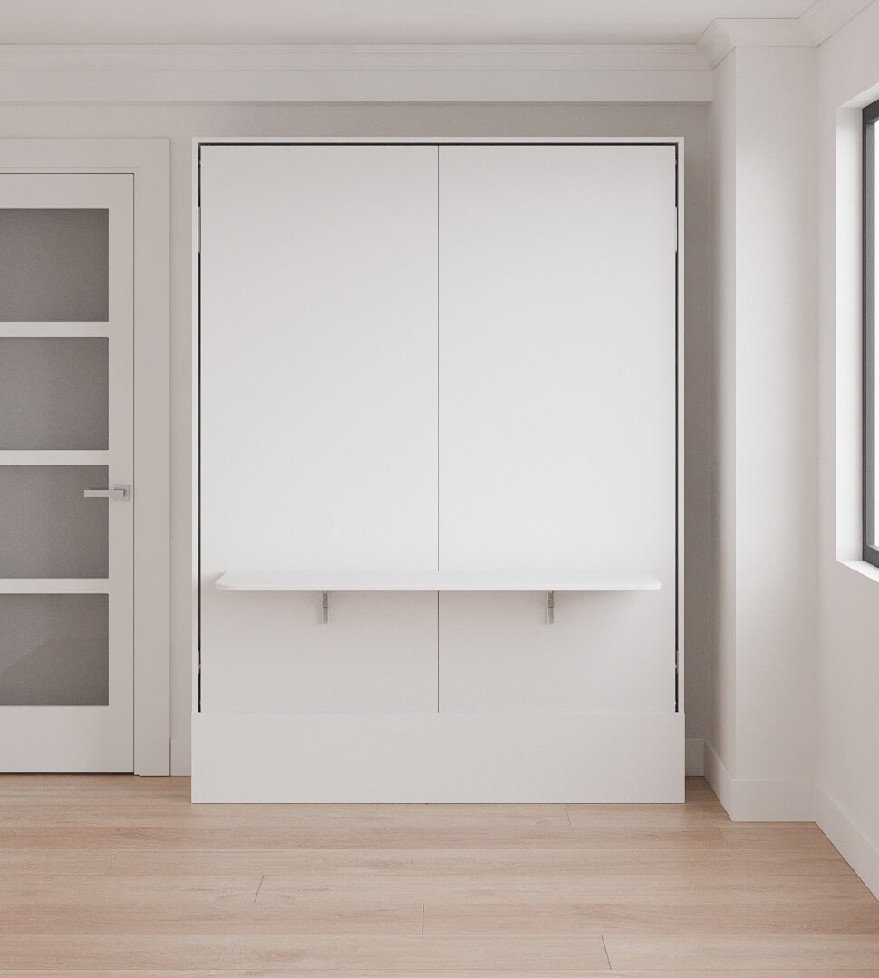 Loft Bed Queen Size with Table, Wardrobe and Bookcase Set