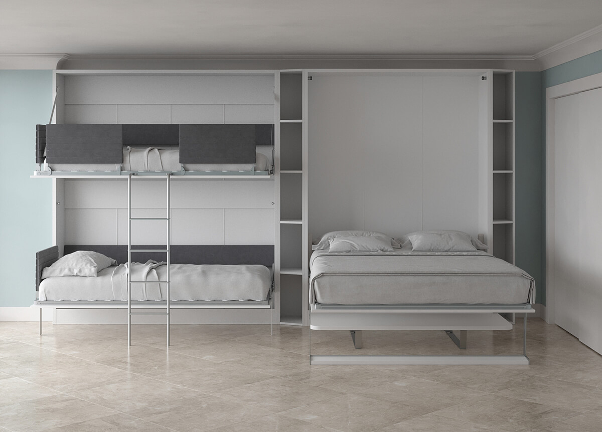 Pensiero Twin Wall Bunk Bed, Royal Queen Wall Bed, Bookcase and Desk