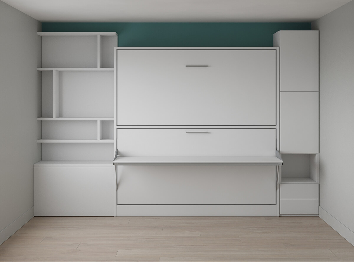 Pensiero Twin Wall Bunk Bed with Bookcase and Table
