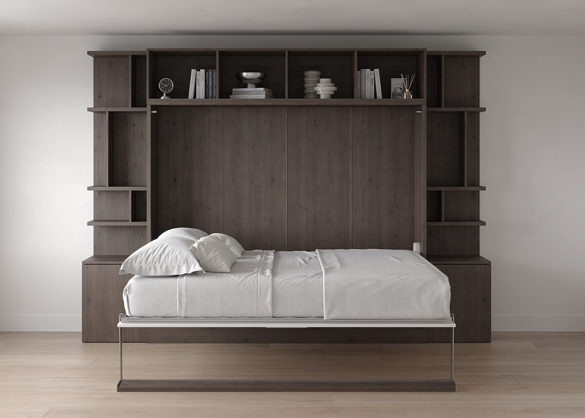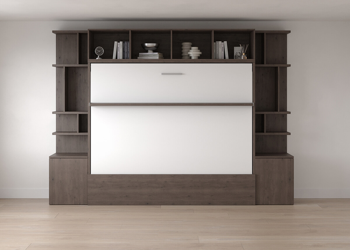 Royal Horizontal Queen Wall Bed with Bookcases