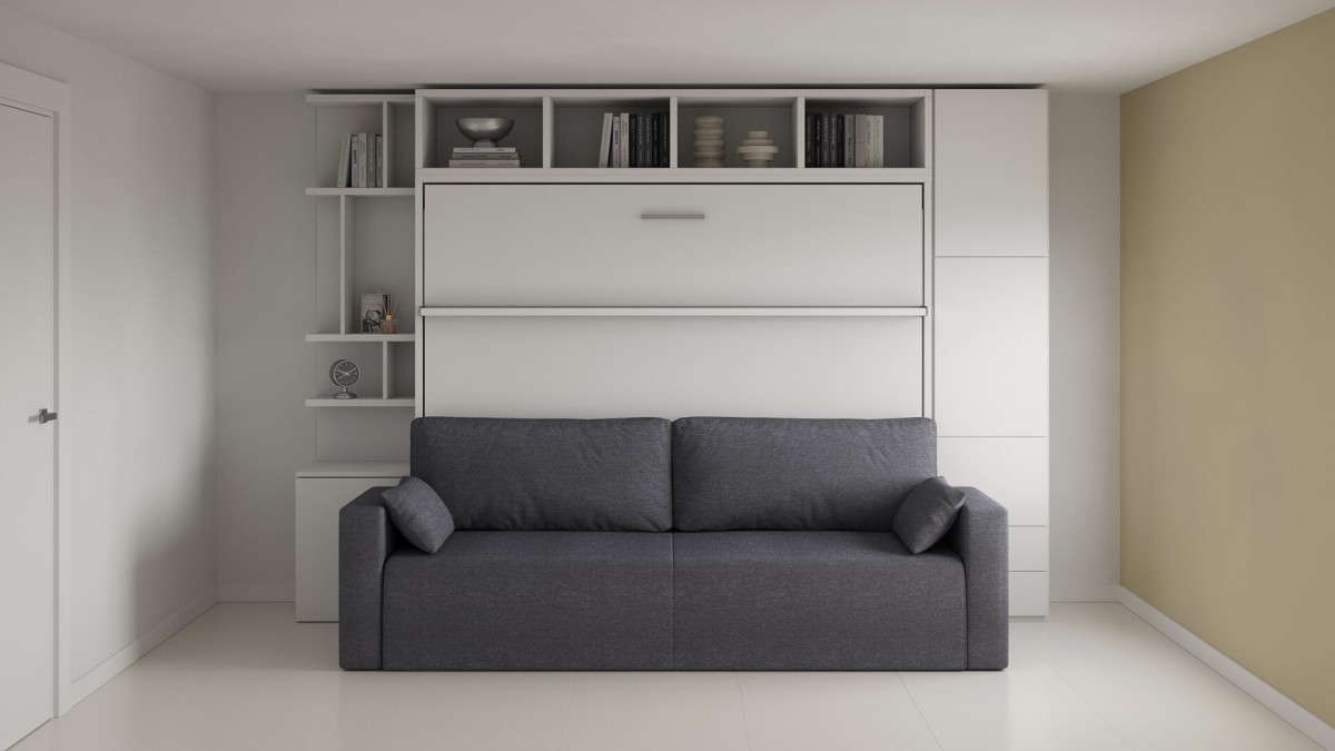 Royal Horizontal Queen Wall Bed with Sectional Sofa and Bookcase Set