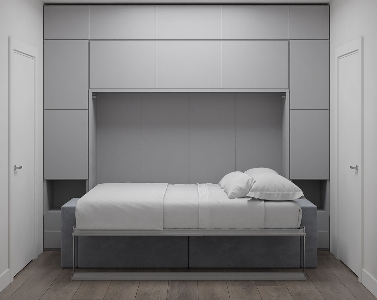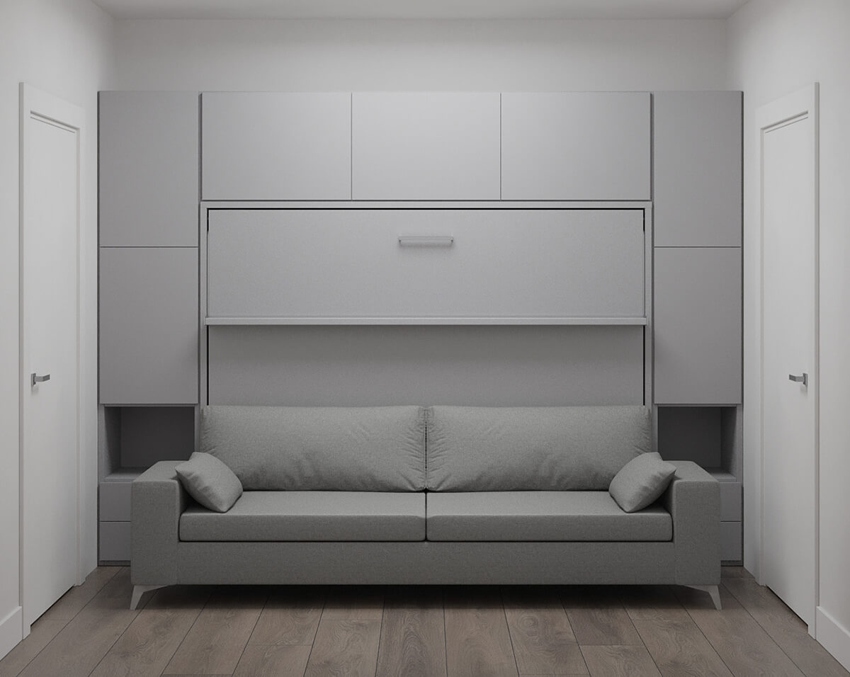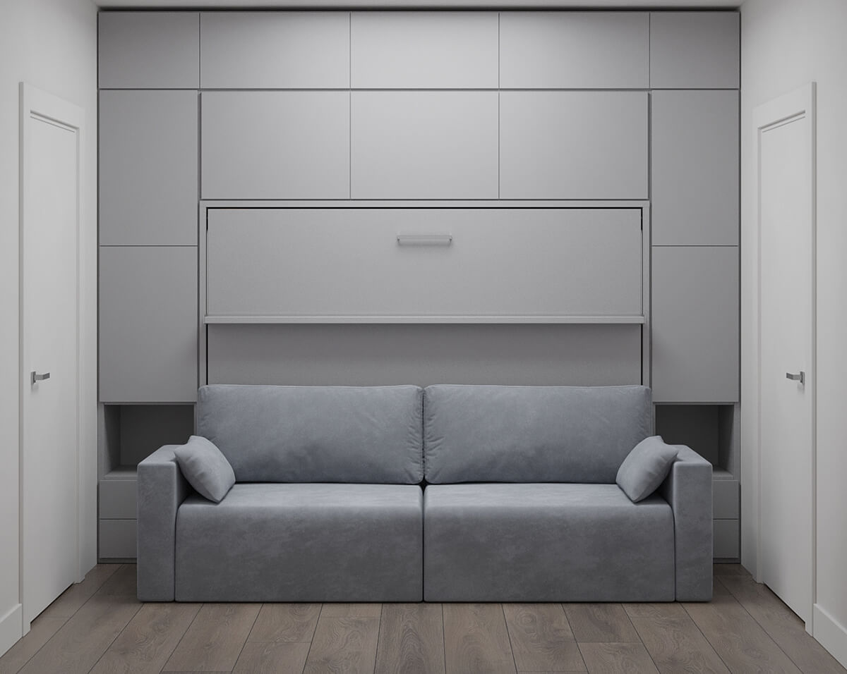 Royal Horizontal Queen Wall Bed with Sectional Sofa and Convertible Wardrobes
