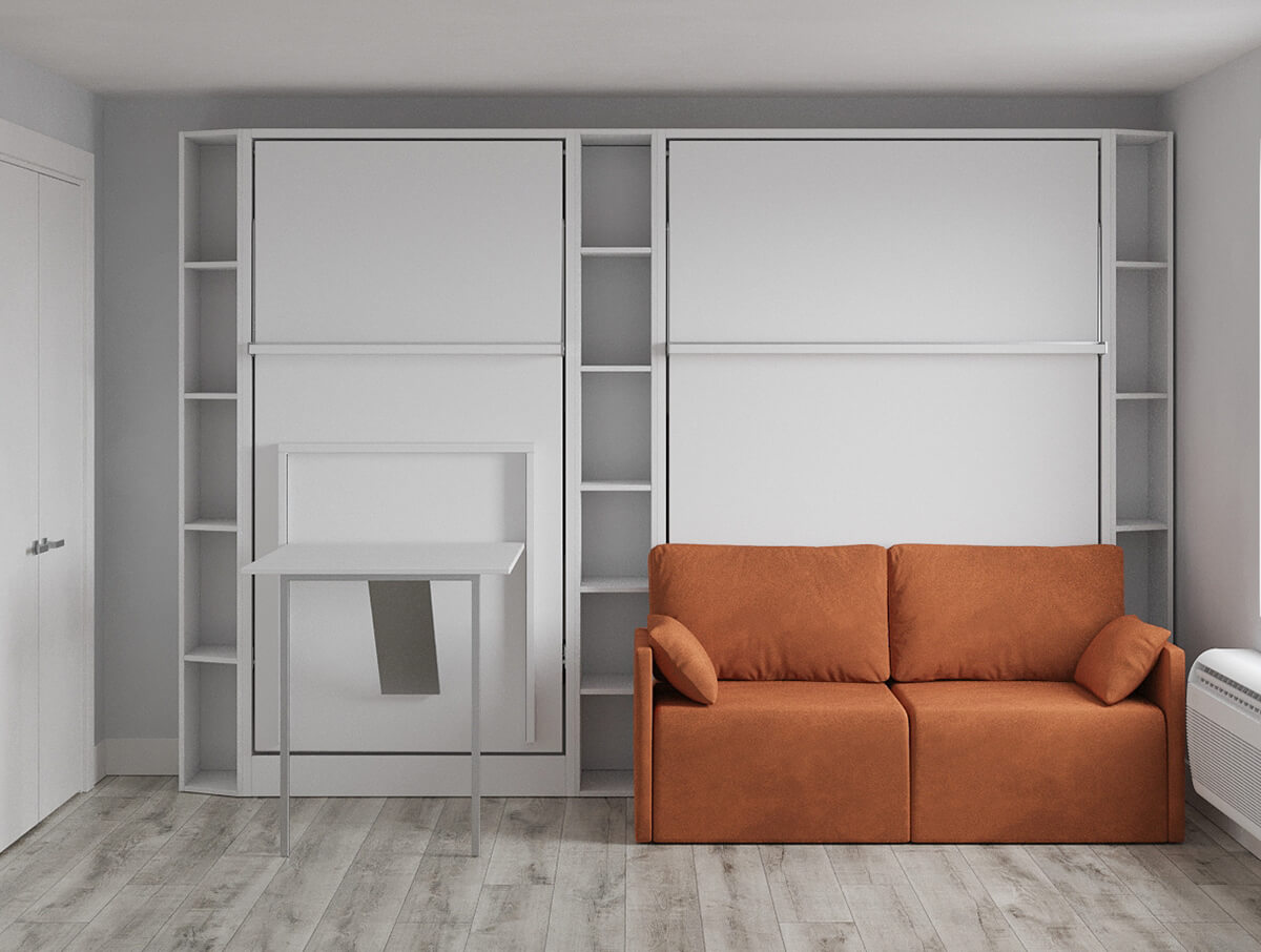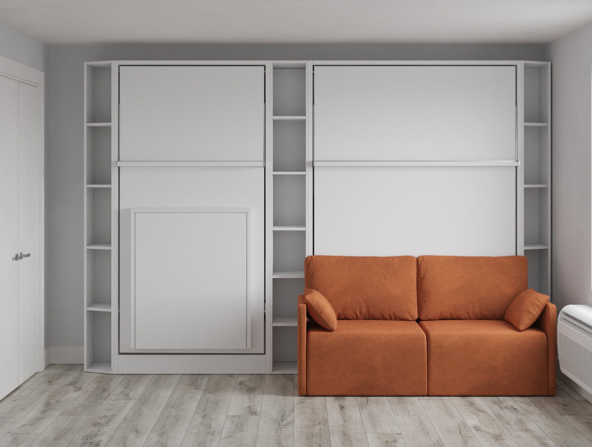 ROYAL Queen Wall Bed, Royal-Twin-Twin-XL-Wall-Bed with Sectional Sofa and Bookcase Set