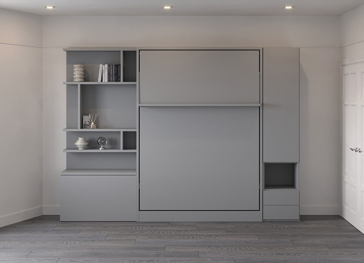 Royal Queen Wall Bed with Bookcase and Wardrobe