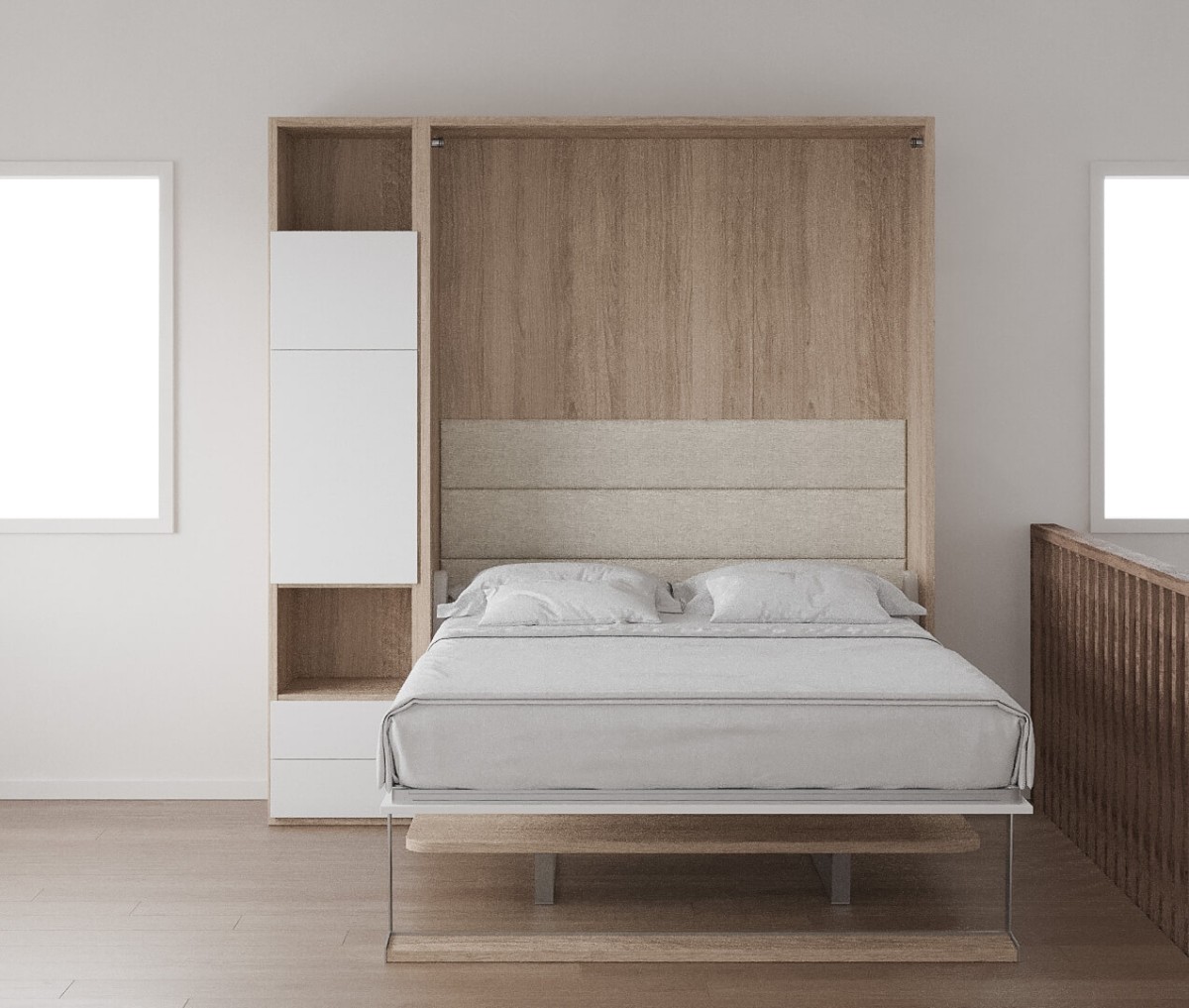 Royal Queen Wall Bed With Desk and Bookcase