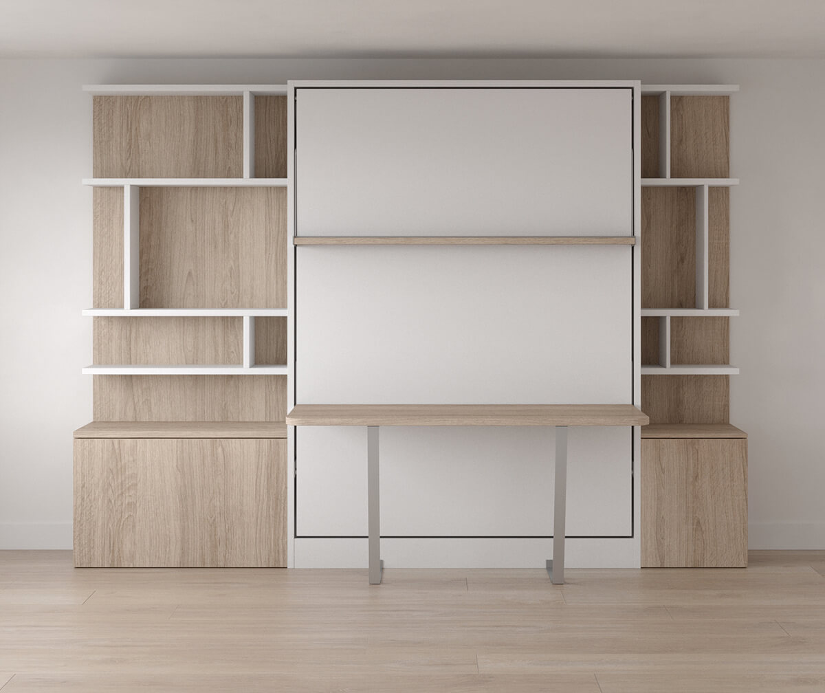 Royal Queen Wall Bed With Desk and Bookcase Set