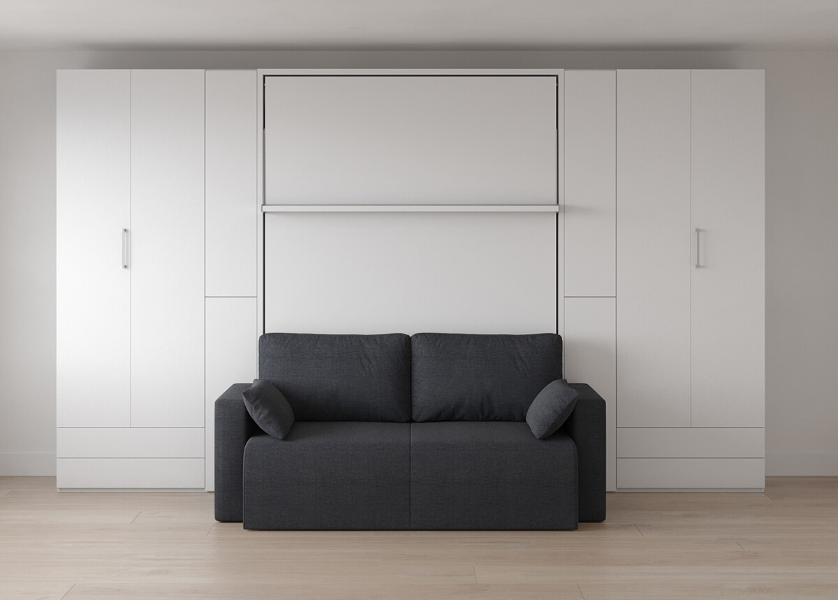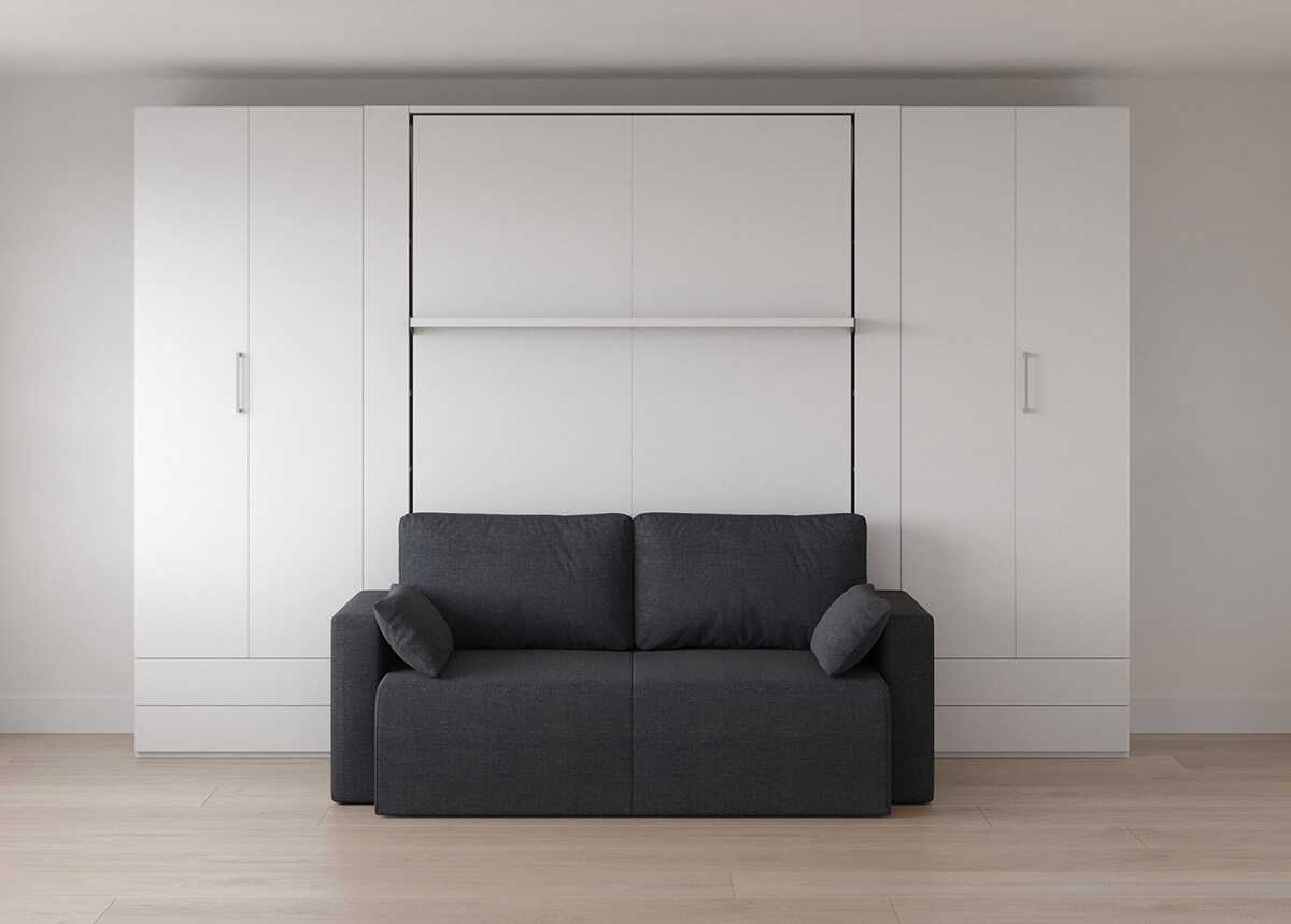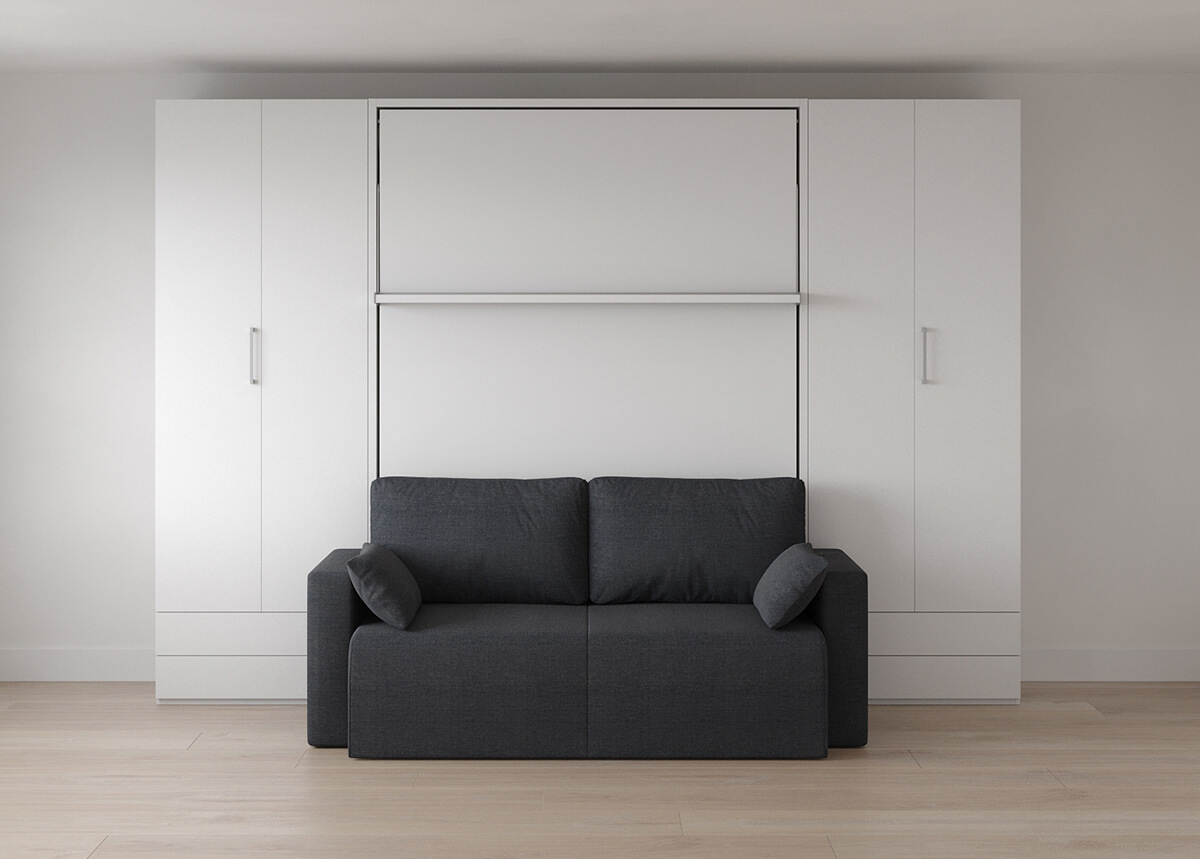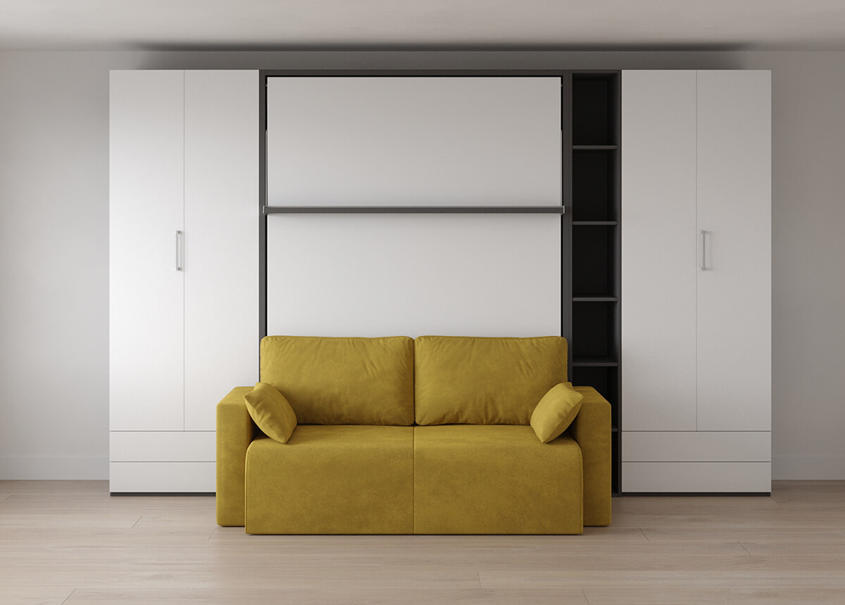 ROYAL Queen Wall Bed with Sectional Sofa and Bookcase