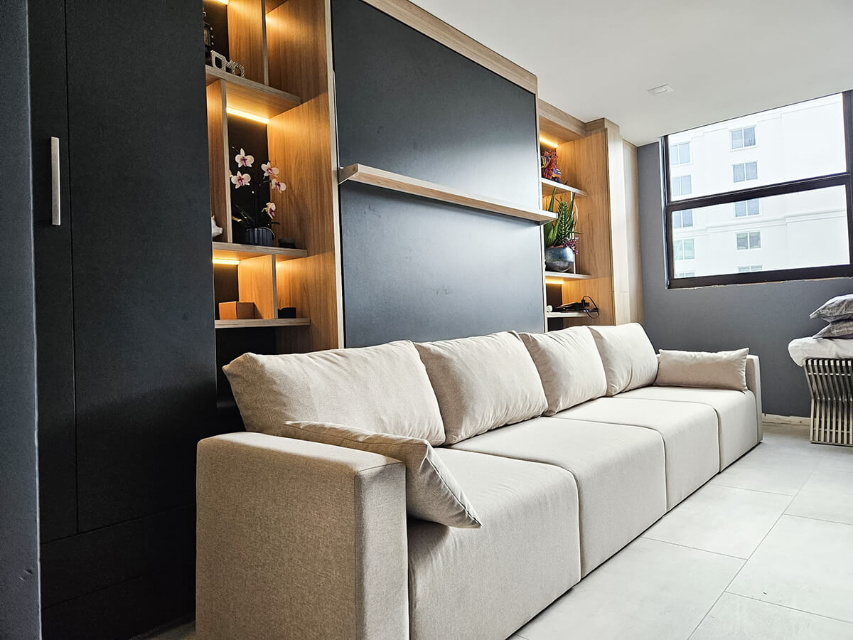 ROYAL Queen Wall Bed with Sectional Sofa and Bookcase Set