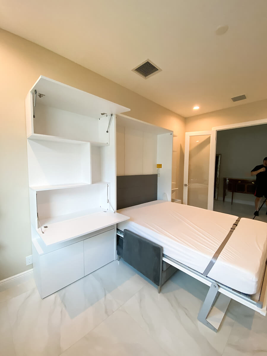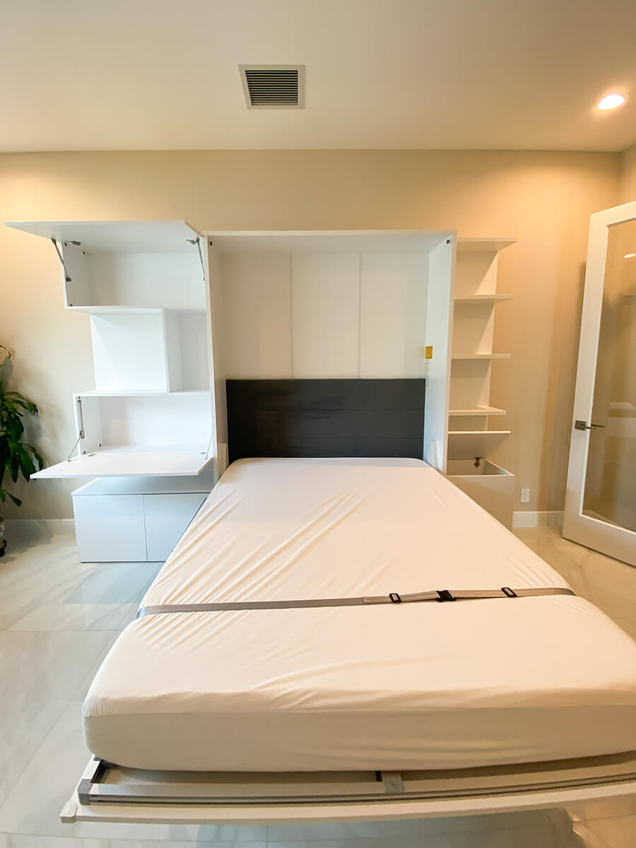 ROYAL Queen Wall Bed with Sectional Sofa and Bookcase Set