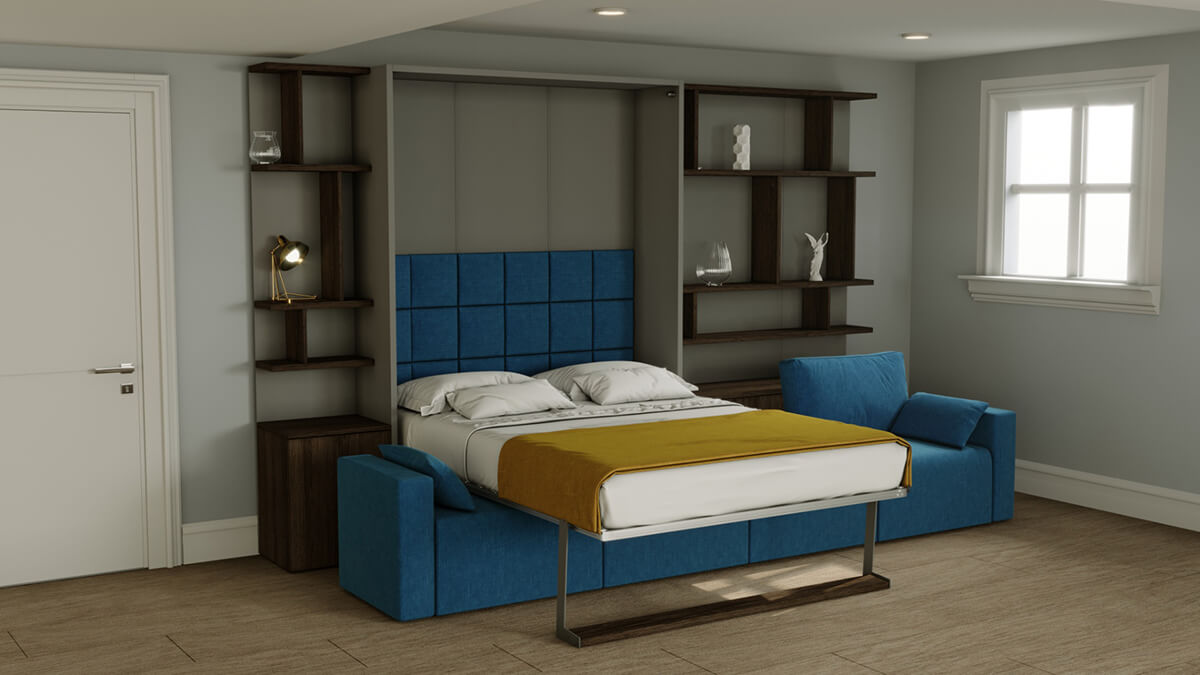 ROYAL Queen Wall Bed with Sectional Sofa and Bookcase Set
