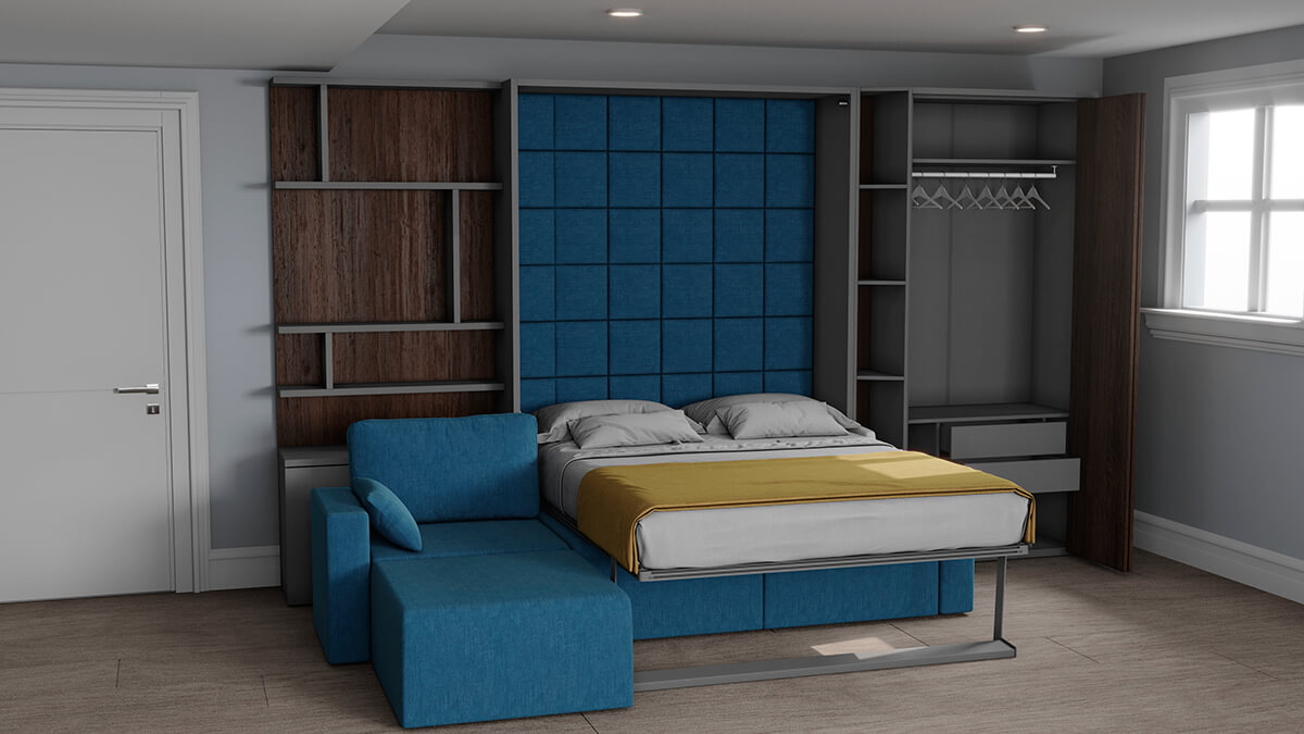 ROYAL Queen Wall Bed with Sectional Sofa and Bookcase Set