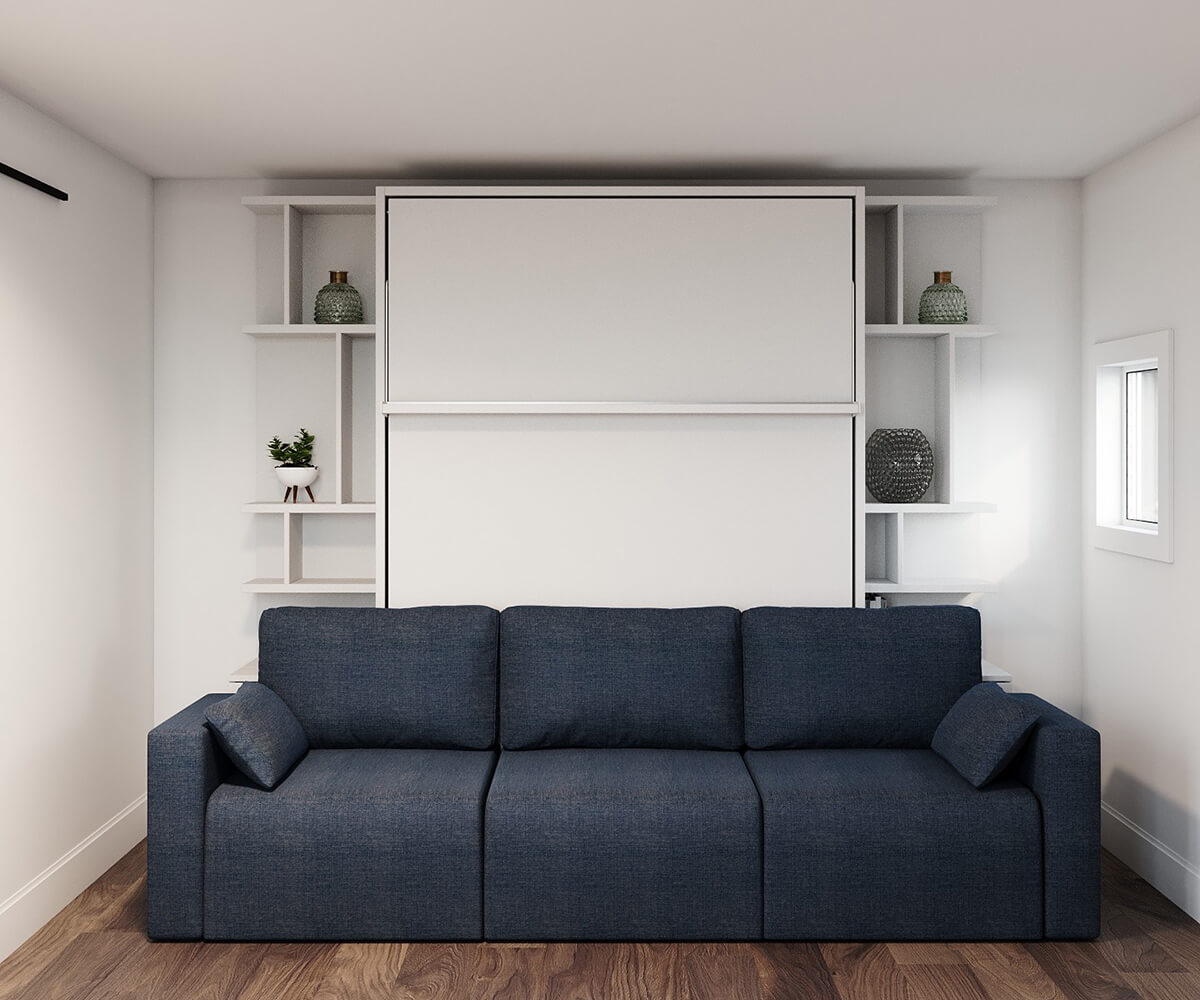 ROYAL Queen Wall Bed with Sectional Sofa and Bookcase Set