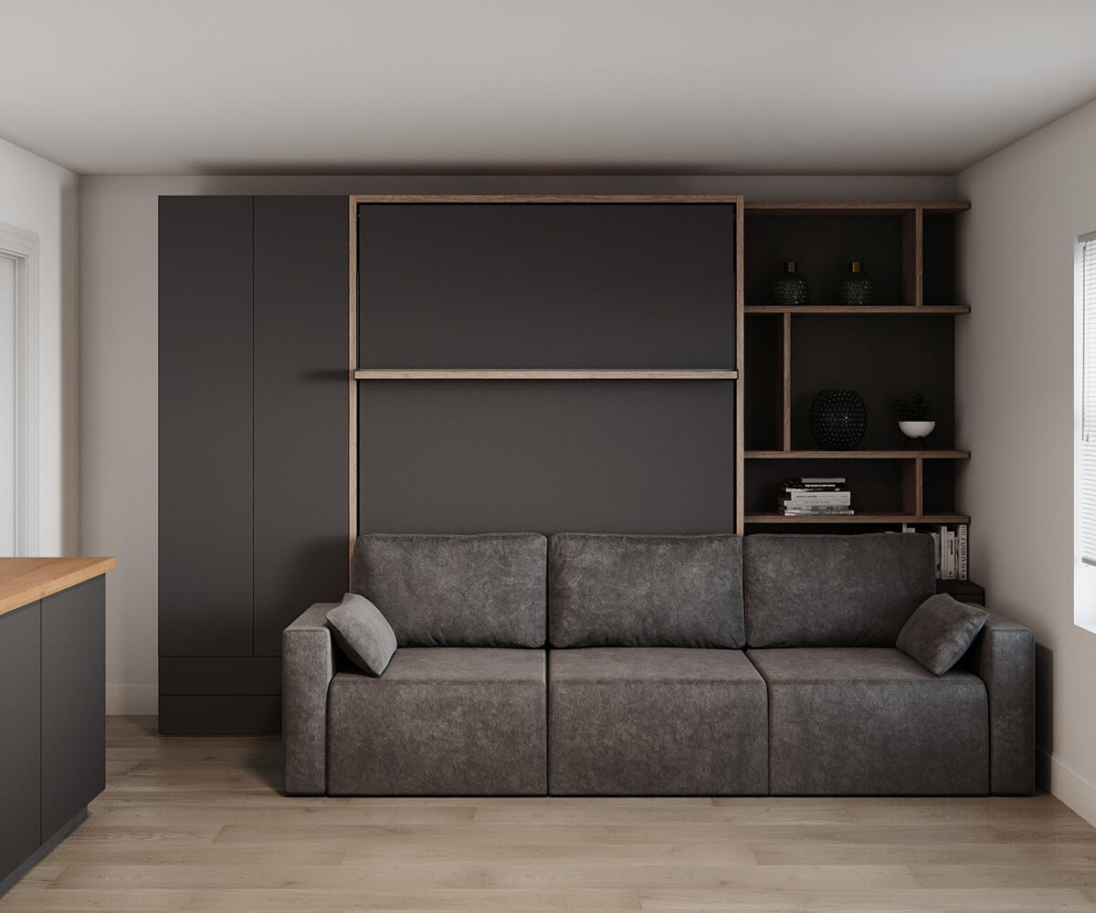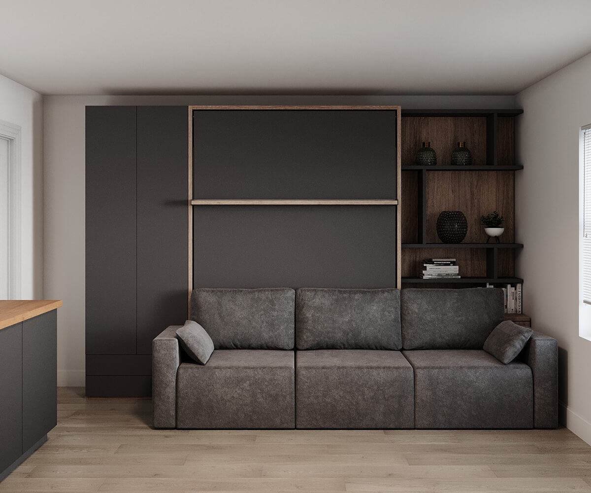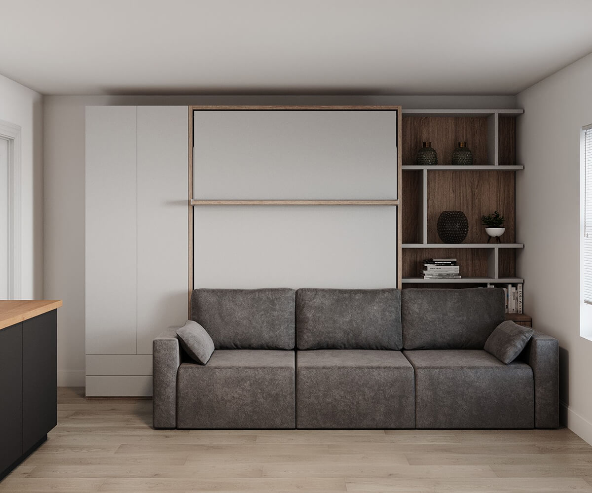 ROYAL Queen Wall Bed with Sectional Sofa and Bookcase Set
