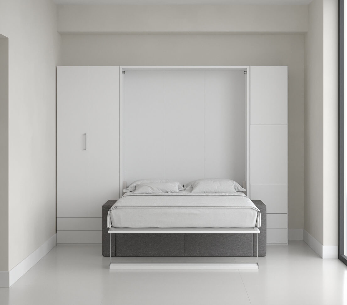 Royal Queen Wall Bed with Sectional Sofa and Bookcase Set