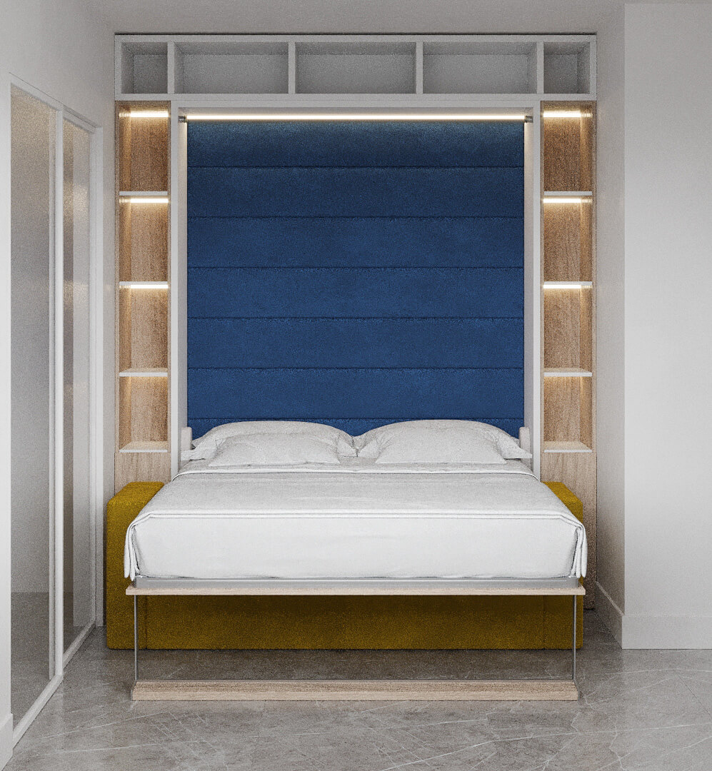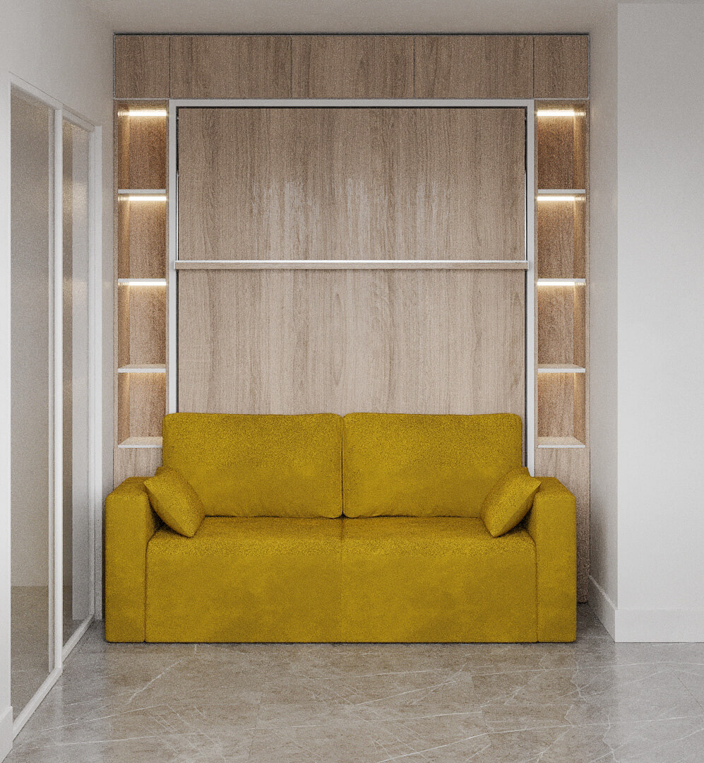 ROYAL Queen Wall Bed with Sectional Sofa and Bookcase Set
