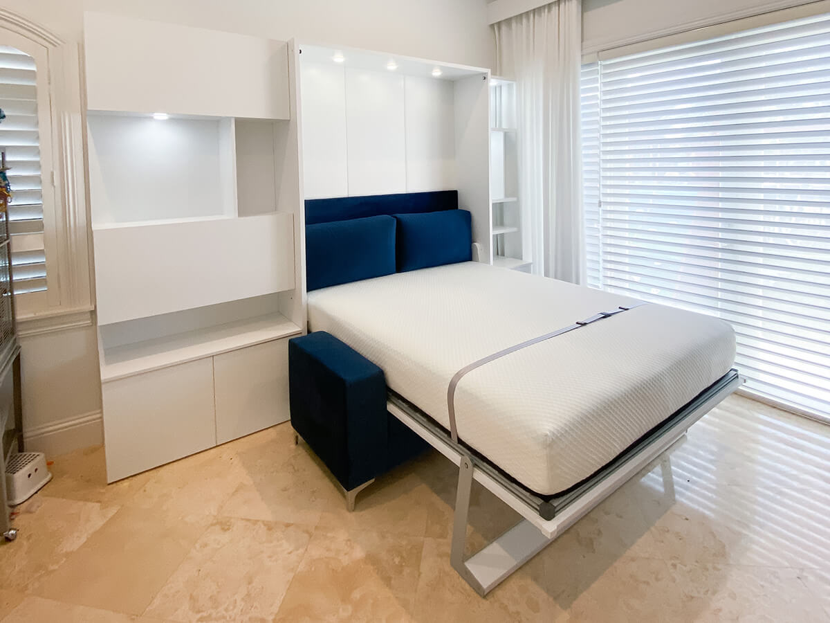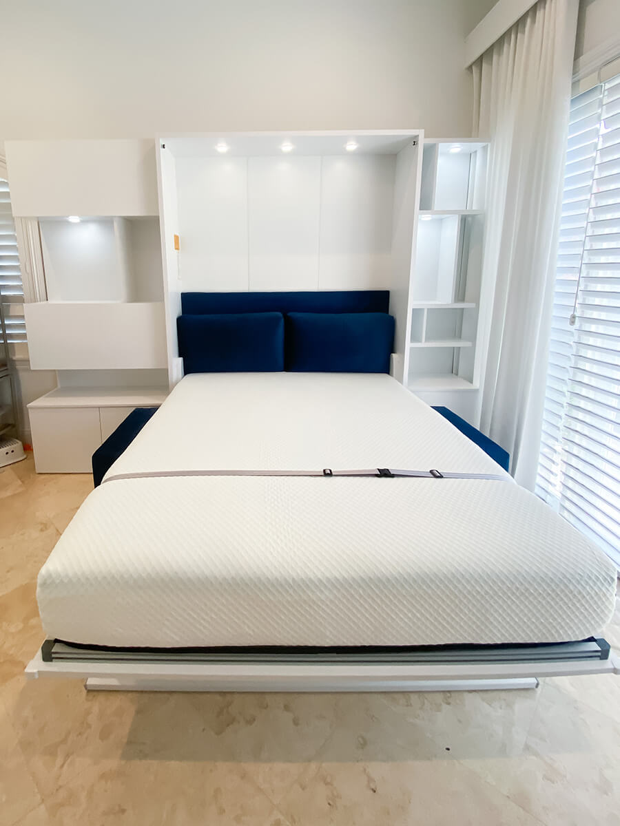 ROYAL Queen Wall Bed with Sectional Sofa, Bookcase and Hidden Desk