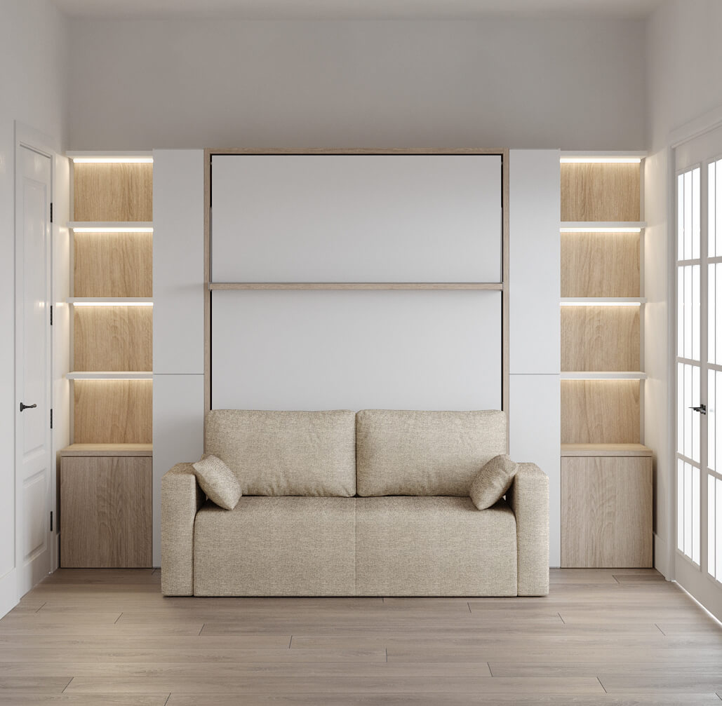 Royal Queen Wall Bed with Sectional Sofa, Bookcase and Wardrobe