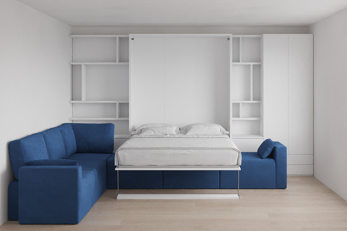 Royal Queen Wall Bed with Sectional Sofa, Bookcases and Wardrobe