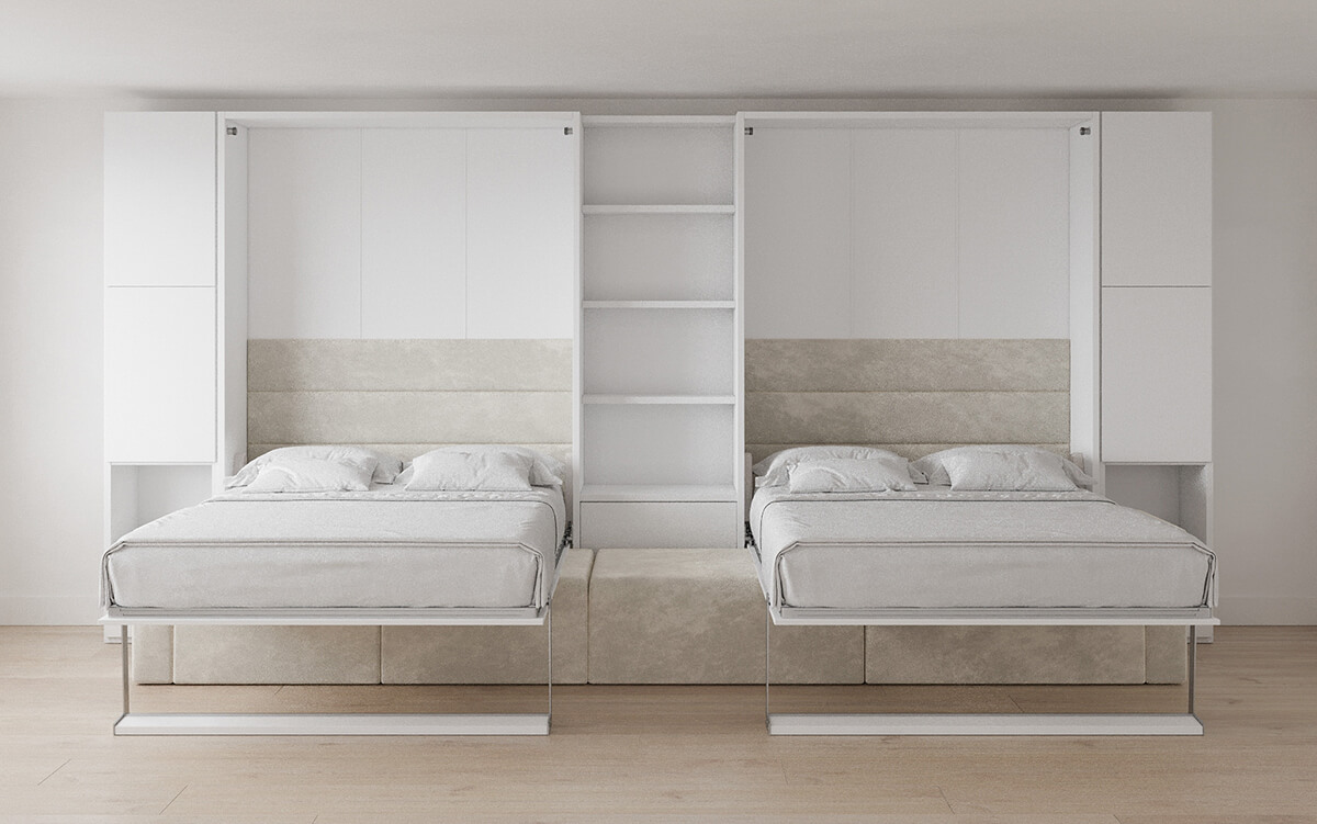 ROYAL Queen Wall Bed with Sectional Sofa, Wardrobe and Bookcase Set
