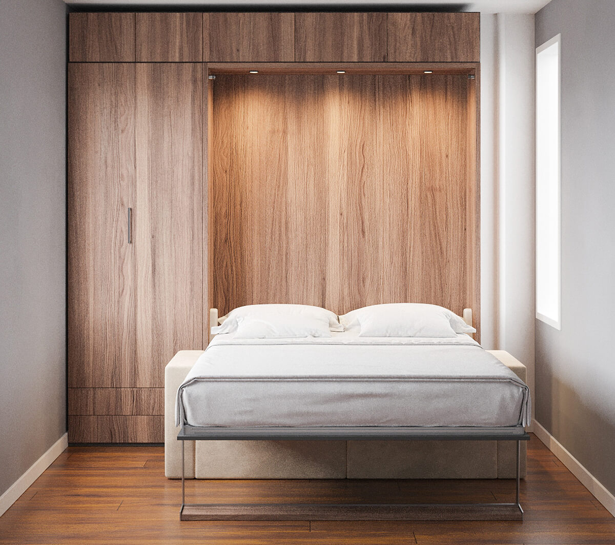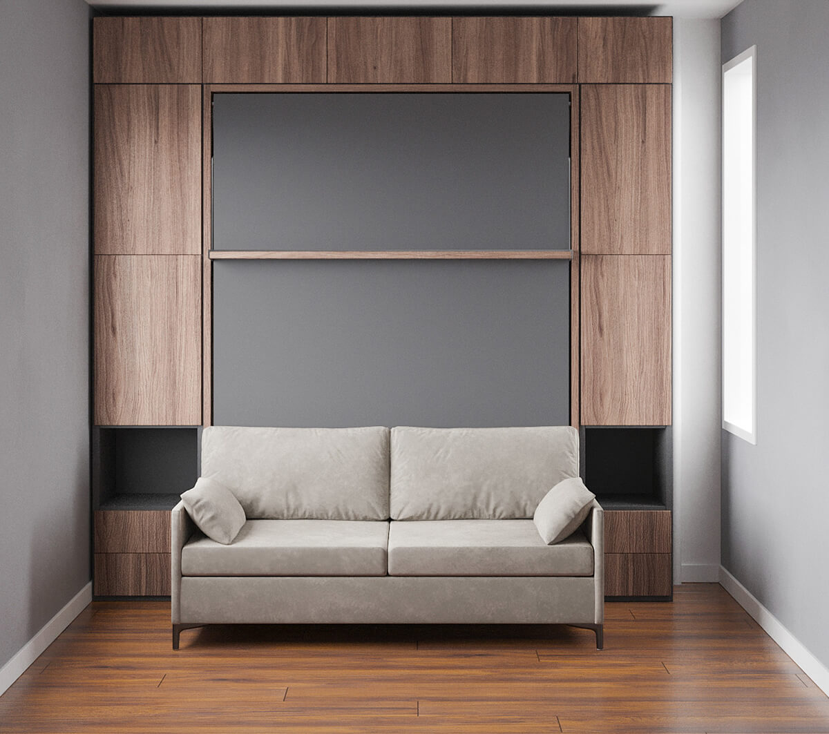 ROYAL Queen Wall Bed with Sectional Sofa, Wardrobe and Bookcase Set