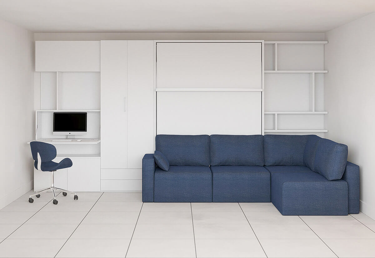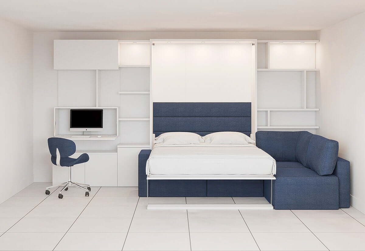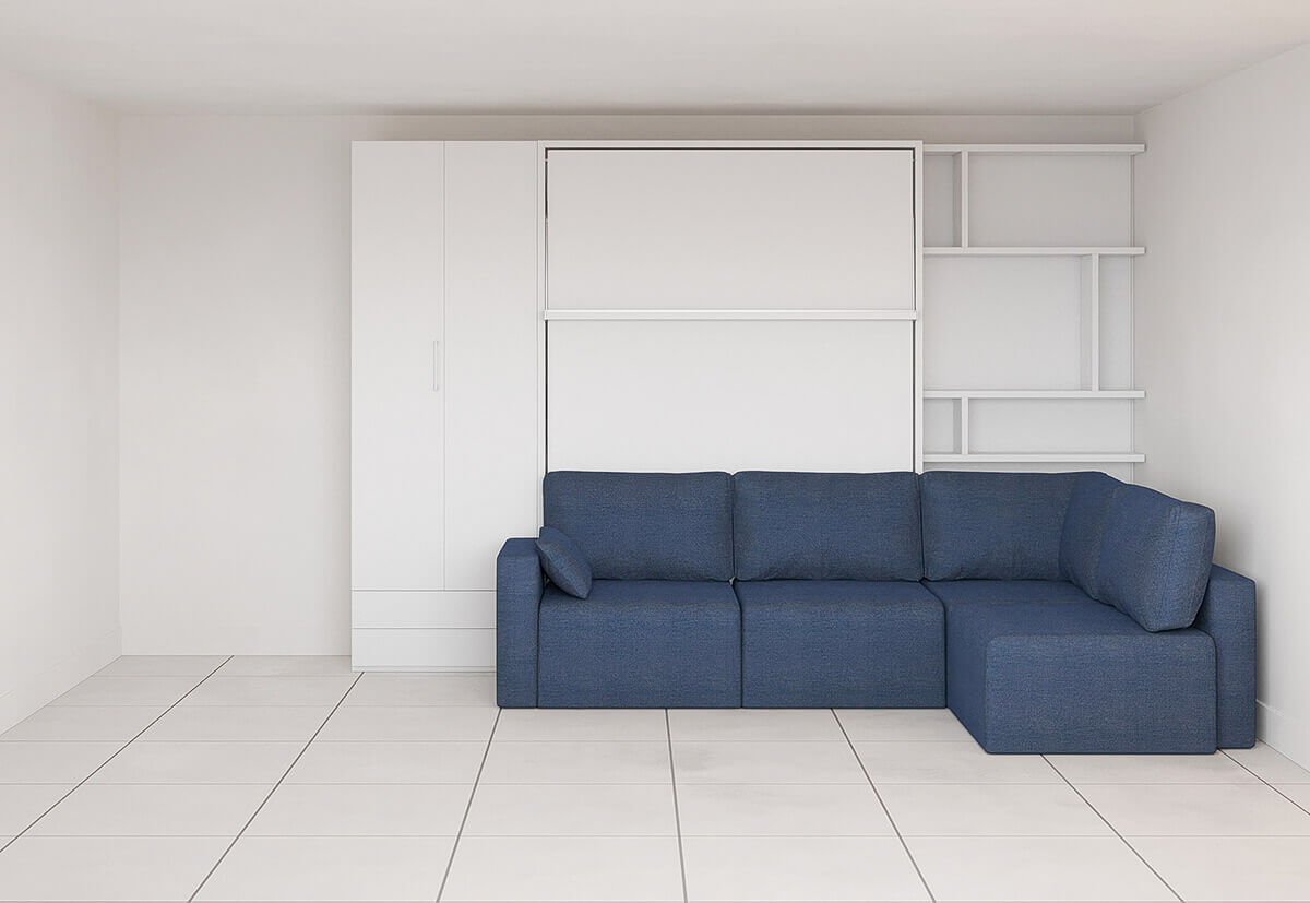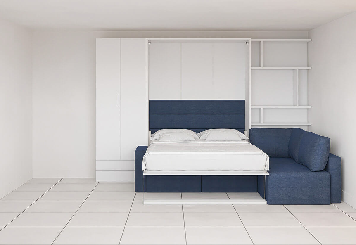 ROYAL Queen Wall Bed with Sectional Sofa, Wardrobe and Bookcases