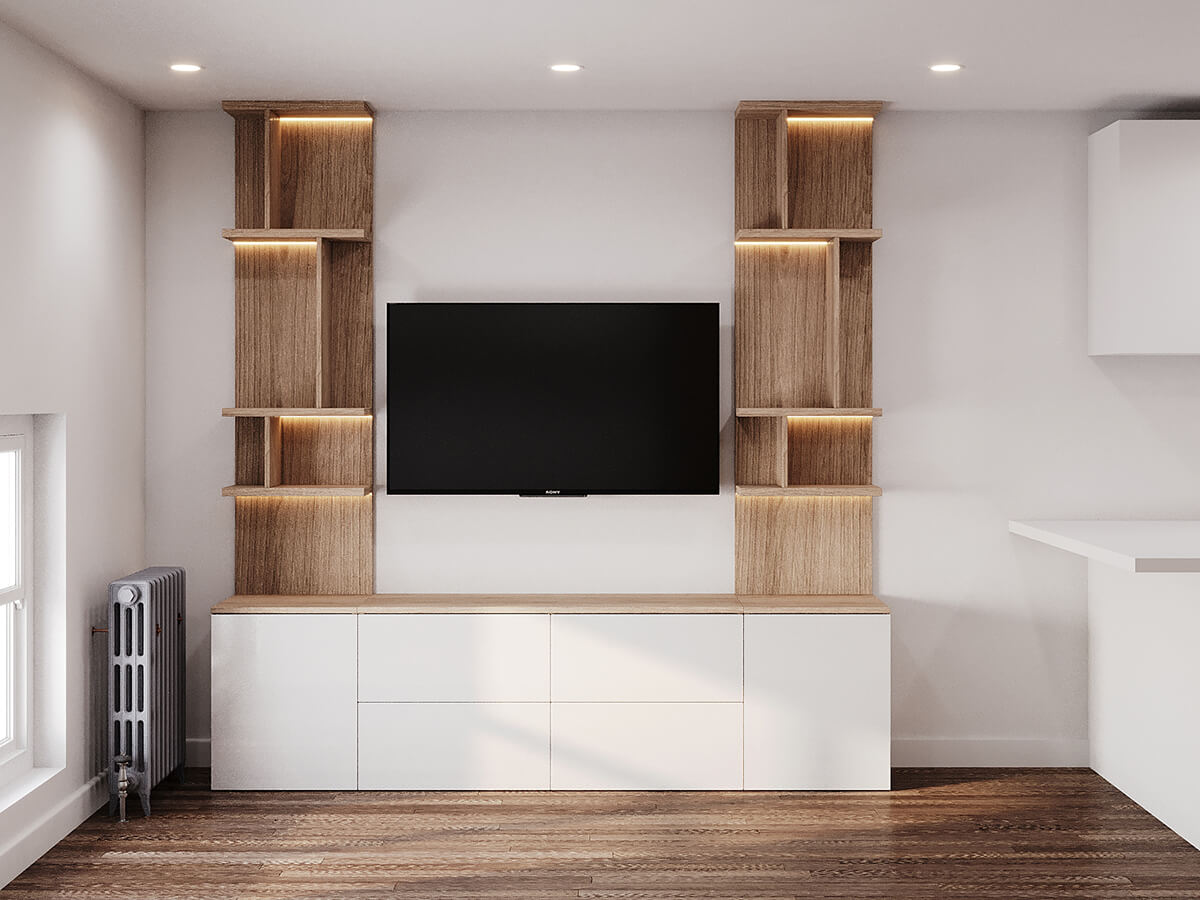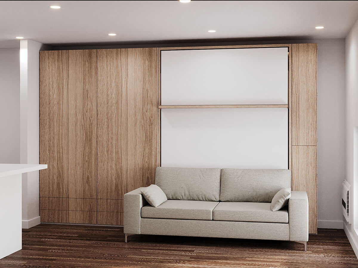 ROYAL Queen Wall Bed with Sectional Sofa, Wardrobe and Bookcases
