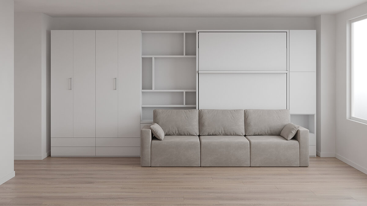 ROYAL Queen Wall Bed with Sectional Sofa, Wardrobes and Bookcase
