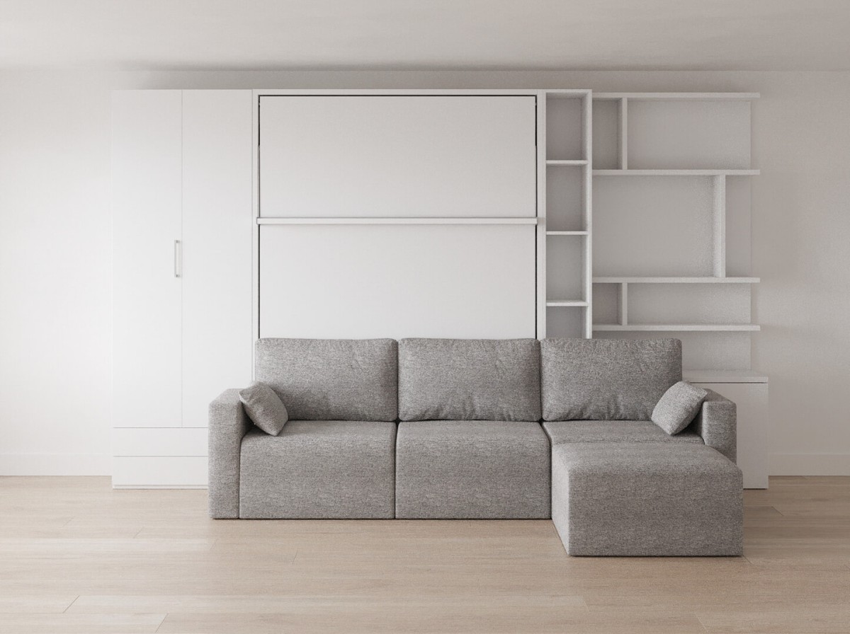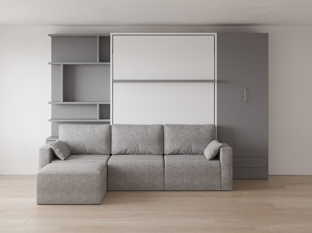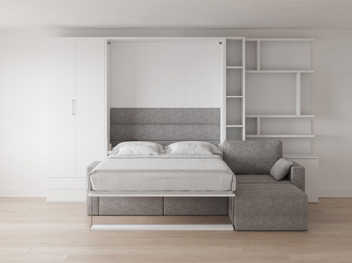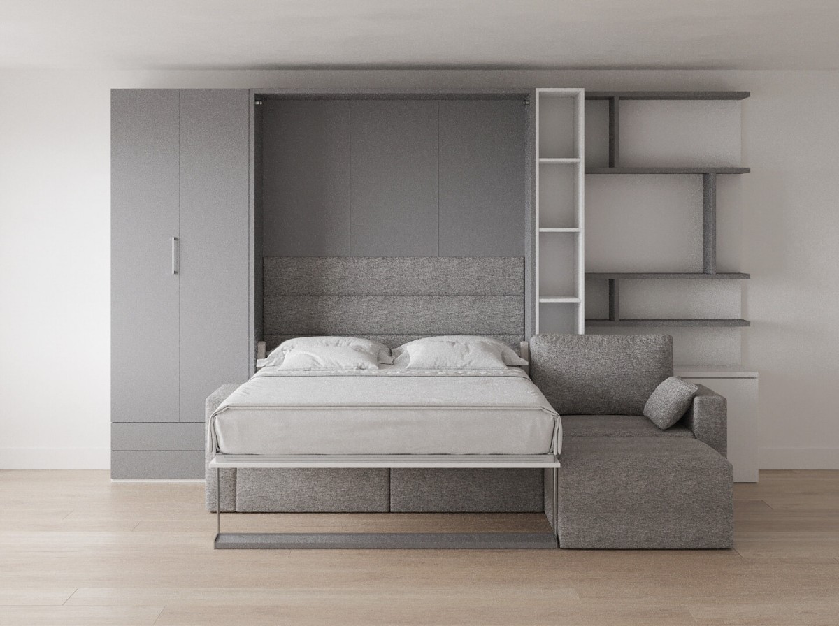 Royal Queen Wall Bed with Sectional Sofa, Wardrobes and Bookcase