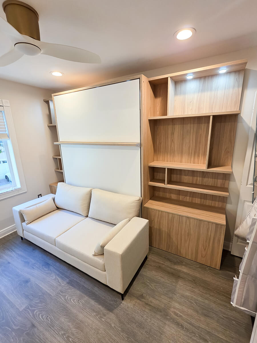 ROYAL Queen Wall Bed with Sectional Sofa, Wardrobes and Bookcases