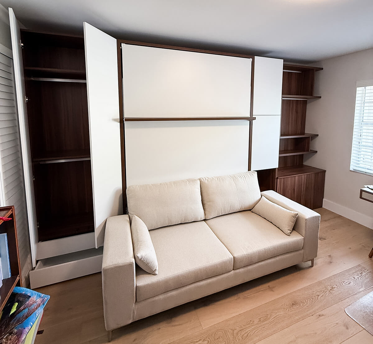 ROYAL Queen Wall Bed with Sectional Sofa, Wardrobes and Bookcases