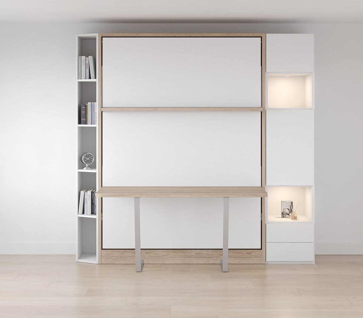 ROYAL Queen Wall Bed with Self Leveling Desk and Bookcase Set