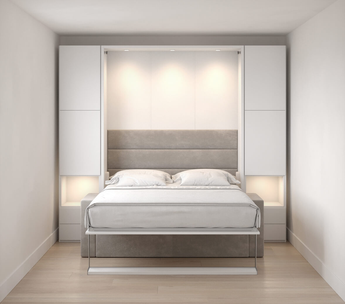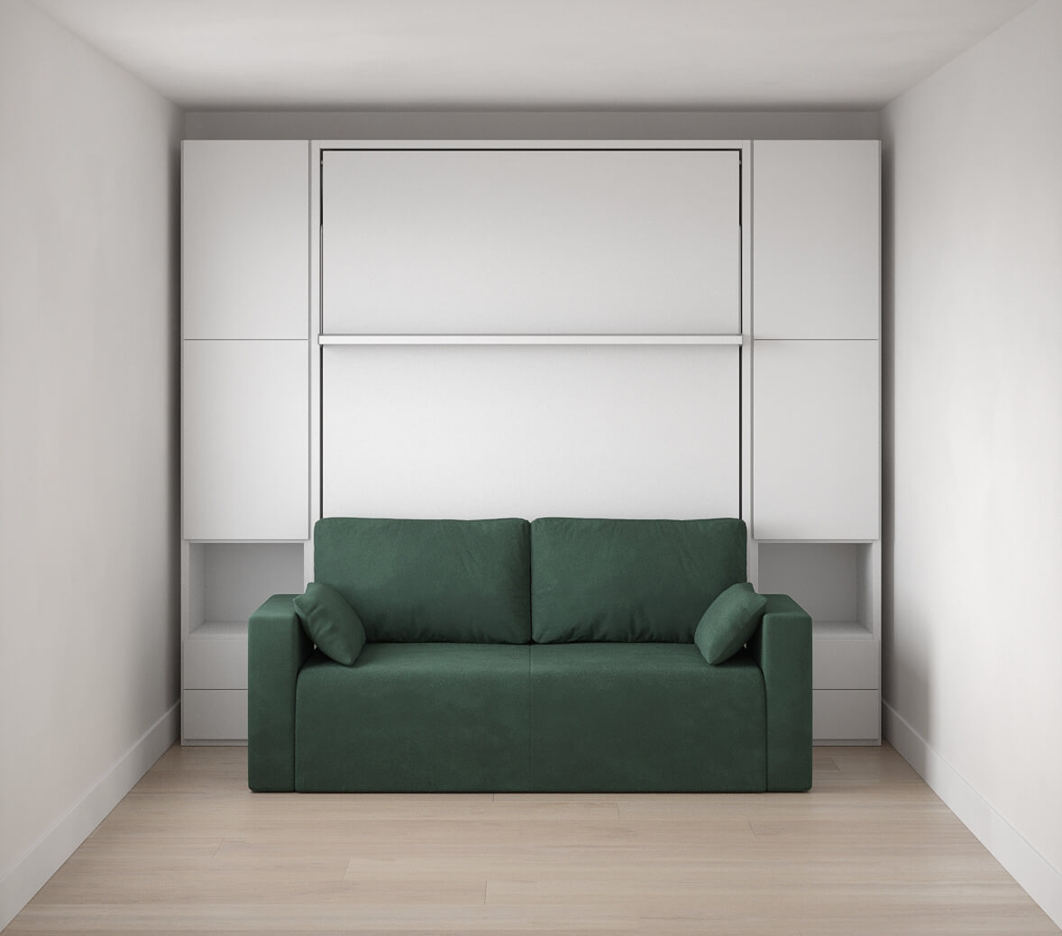 Royal Queen Wall Bed with Wardrobe and Sectional Sofa