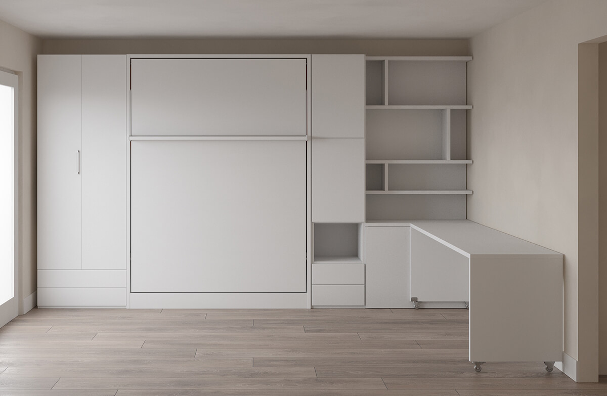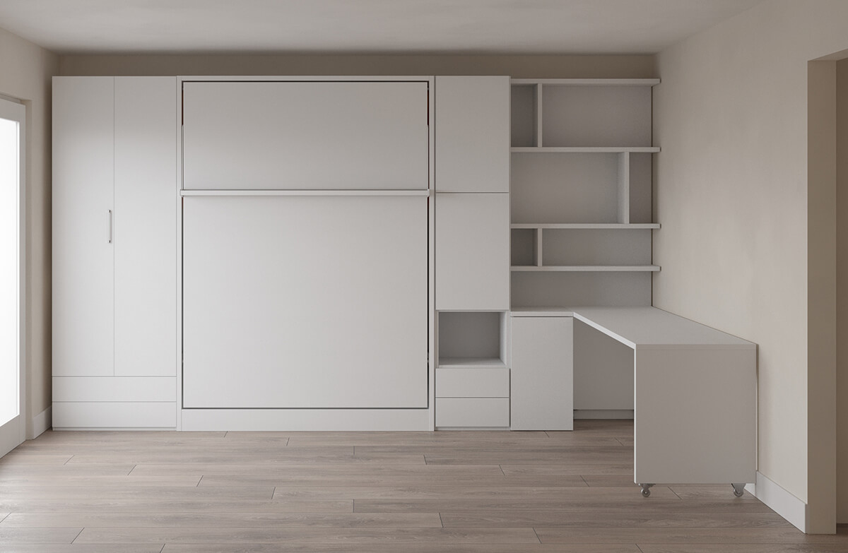 Royal Queen Wall Bed with Wardrobe, Bookcases and Table