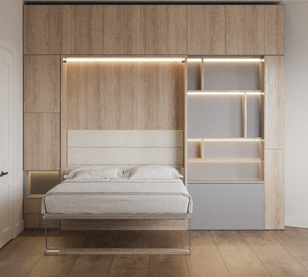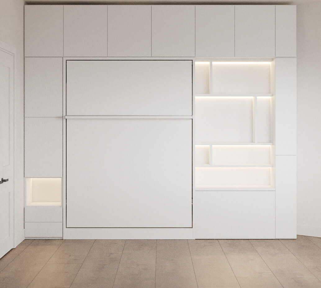 Royal Queen Wall Bed with Wardrobes and Bookcase