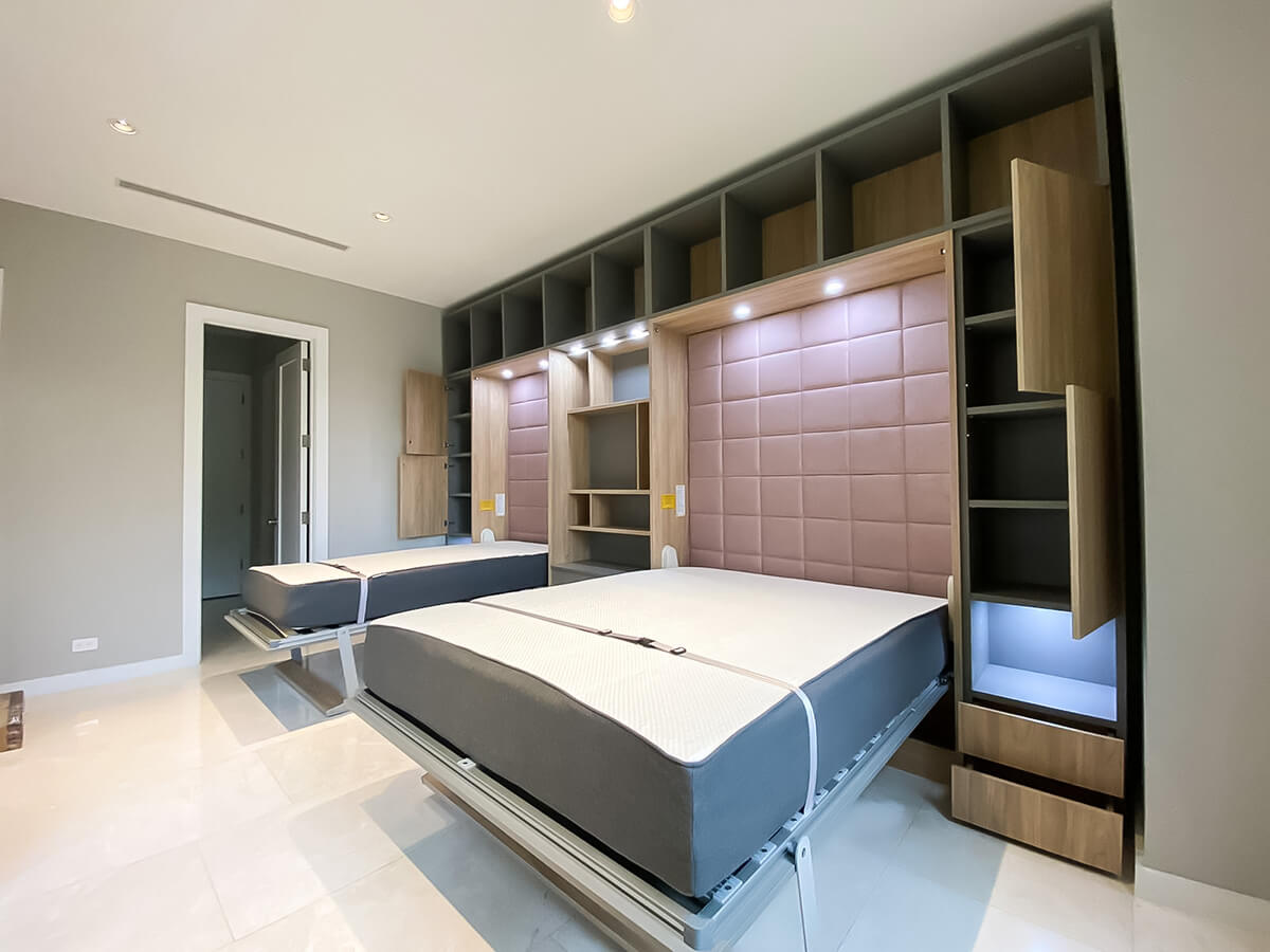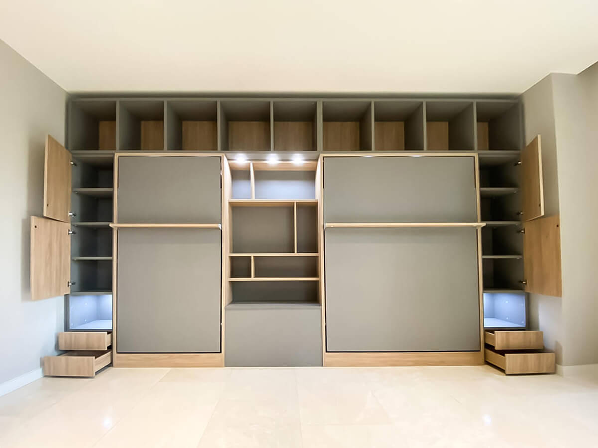 ROYAL Queen Wall Bed with Sectional Sofa and Bookcase Set