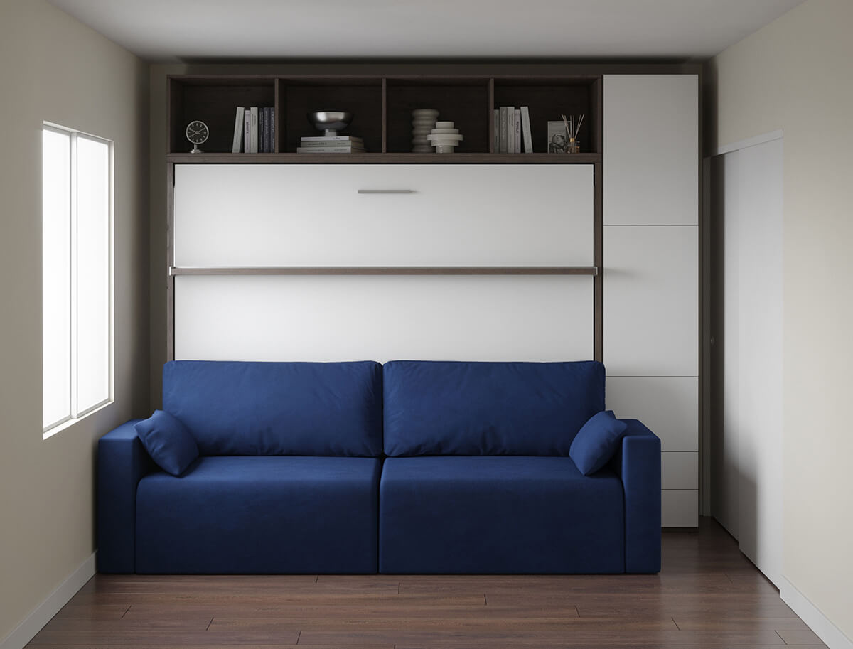 Royal Horizontal Queen Wall Bed with Sectional Sofa and Bookcase Set