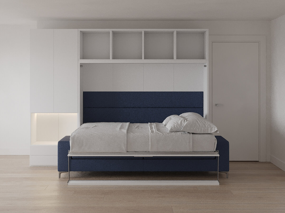 Royal Horizontal Queen Wall Bed with Sofa, Bookcase and Wardrobe
