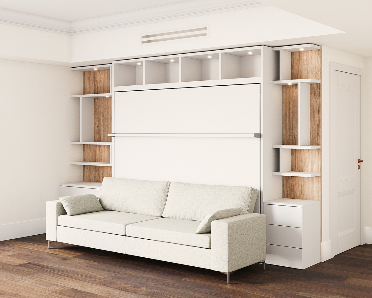 Royal Horizontal Queen Wall Bed with Wardrobe and Bookcase Set
