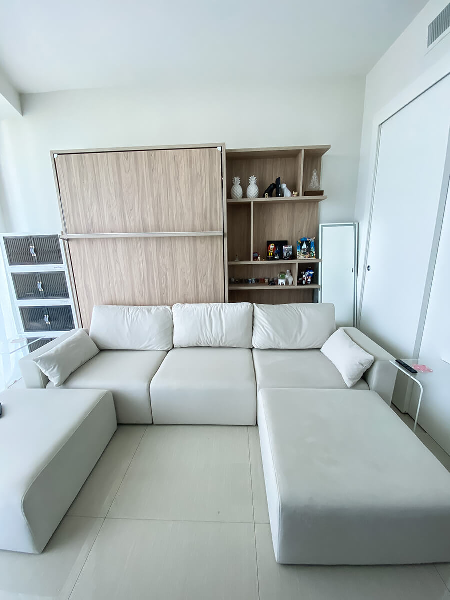 ROYAL Queen Wall Bed with Sectional Sofa and Bookcases