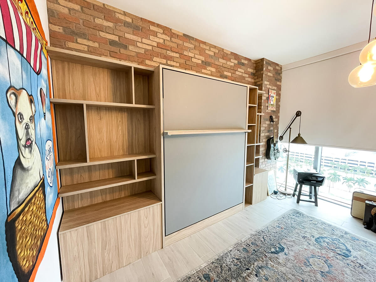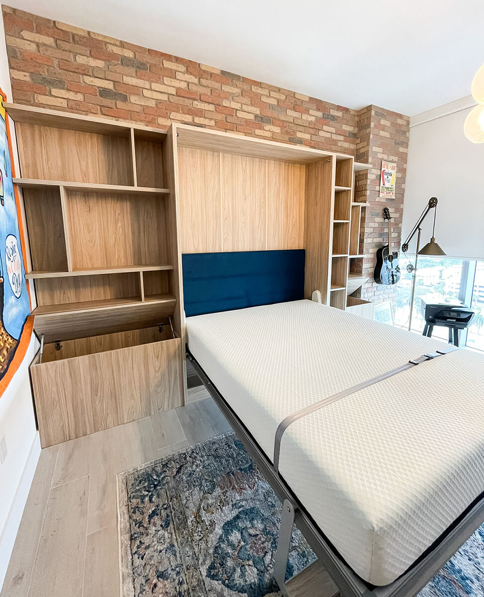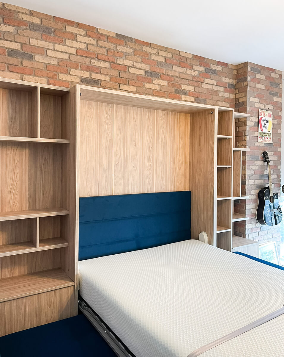 ROYAL Queen Wall Bed with Sectional Sofa and Bookcase Set