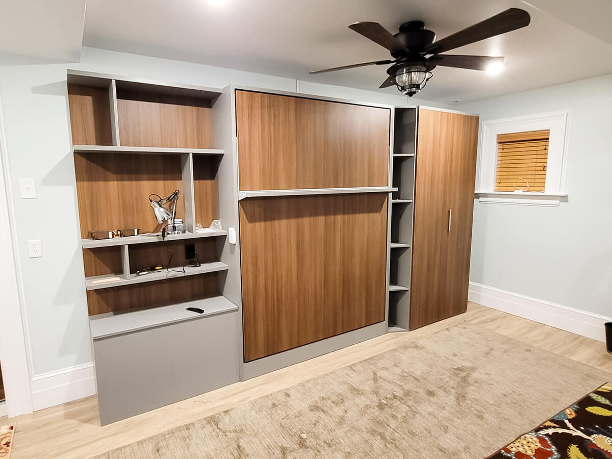 ROYAL Queen Wall Bed with Sectional Sofa and Bookcase Set