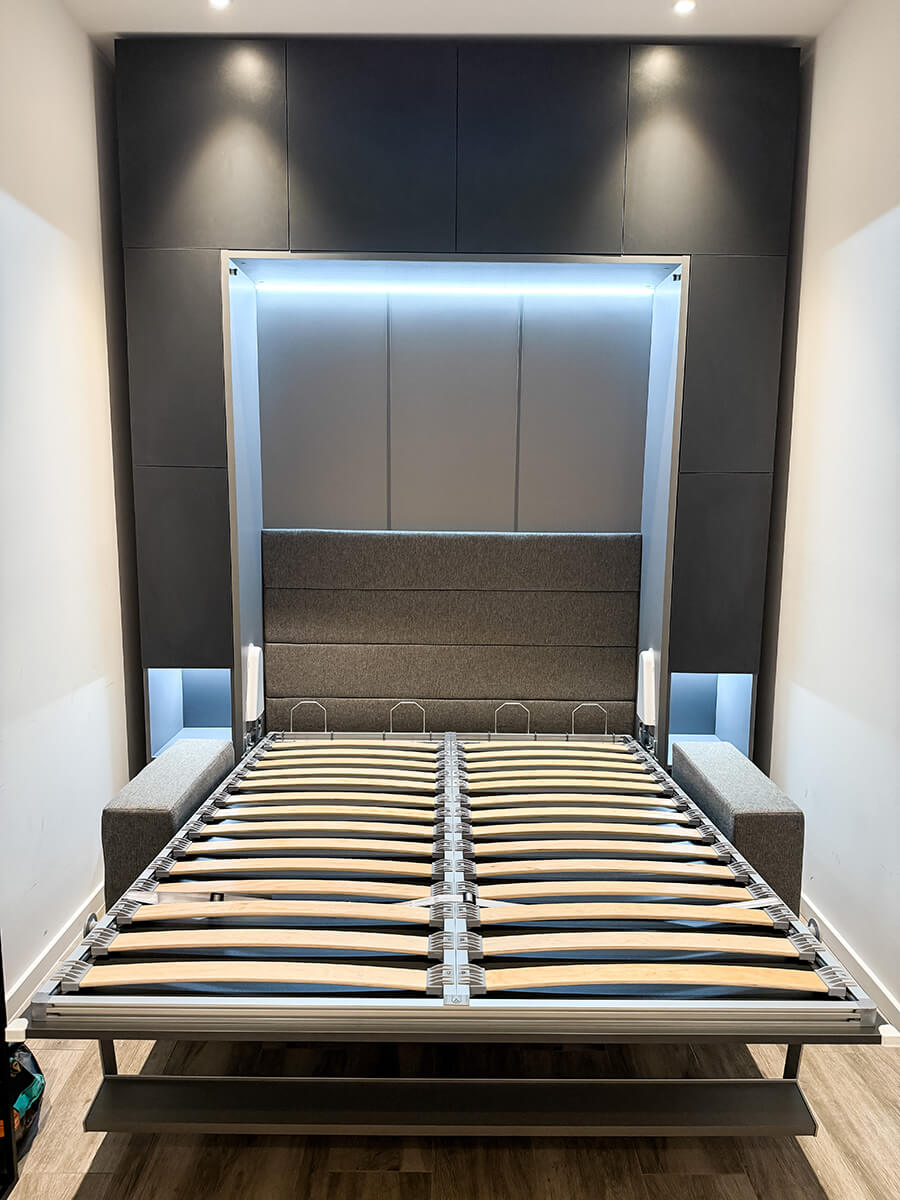 ROYAL Queen Wall Bed with Sectional Sofa, Wardrobes and Bookcases